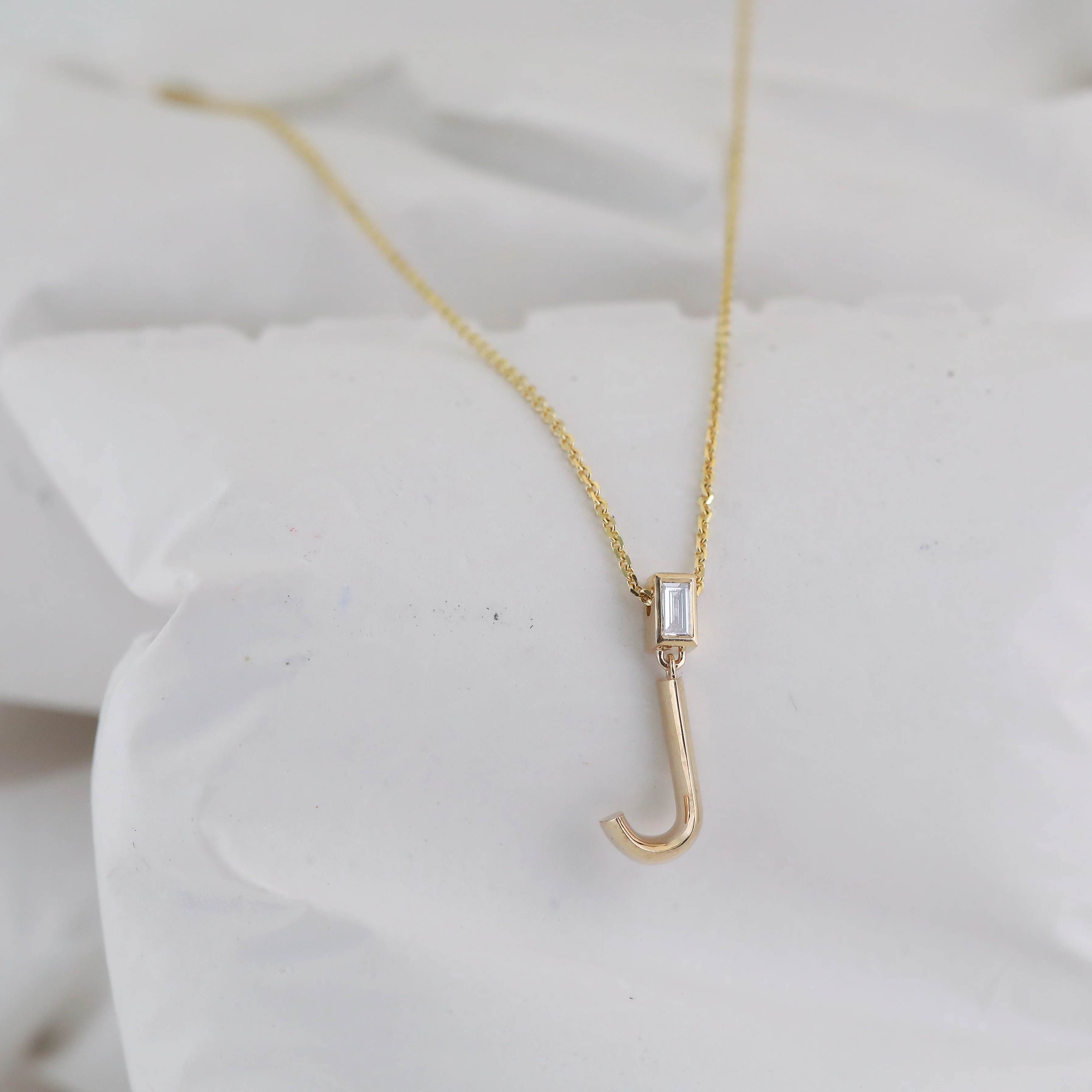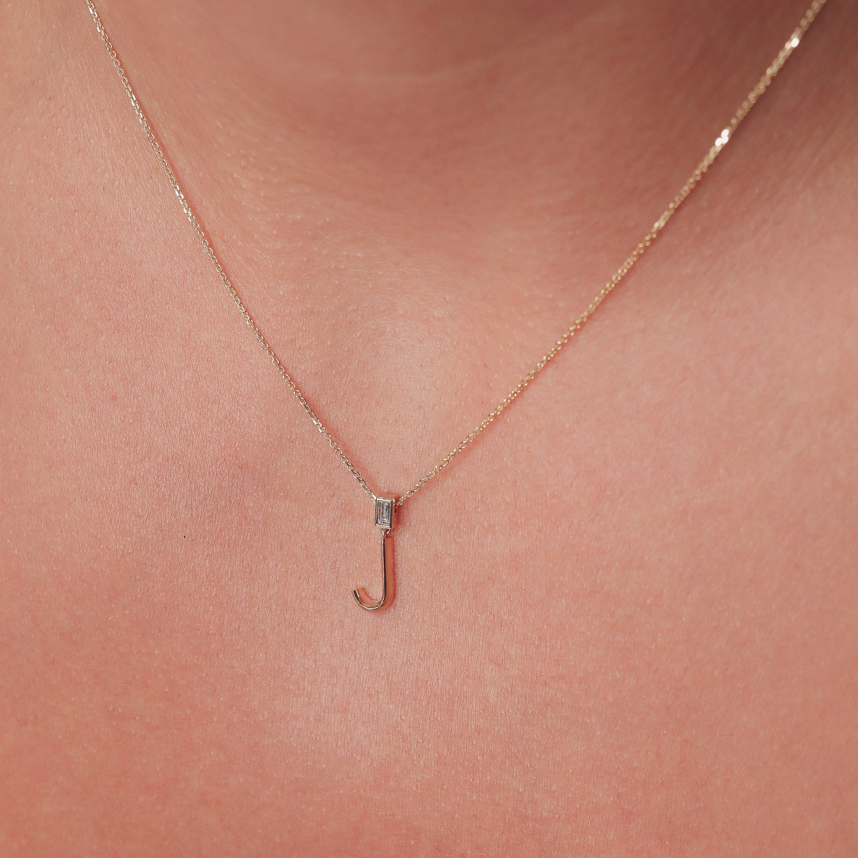 These pendants feature a baguette cut white diamond on a 9k yellow gold trace chain.Â